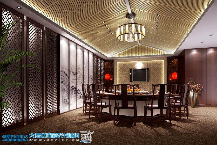 中式餐飲包間內部構造精妙且時(shí)尚大氣