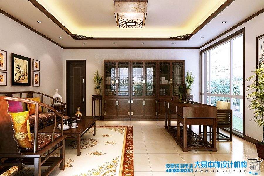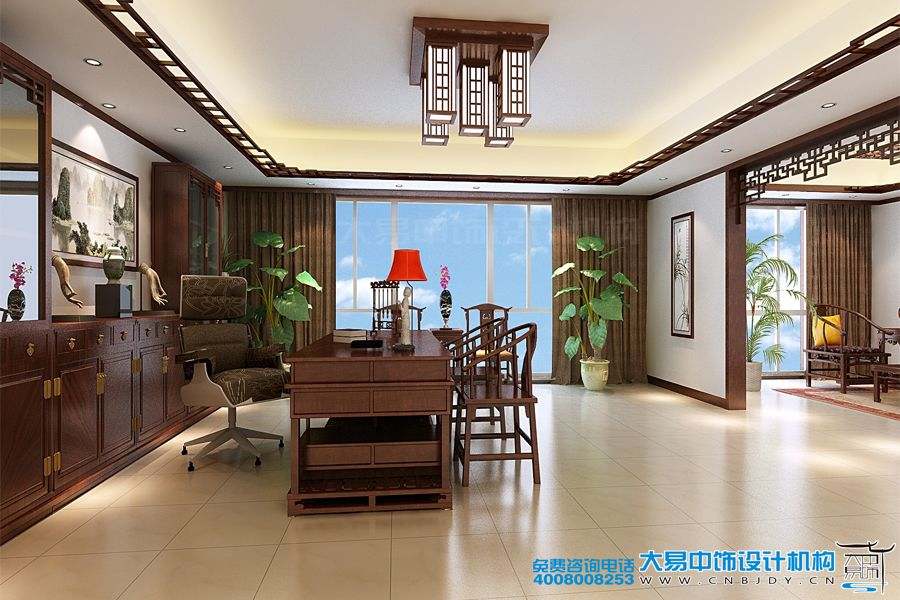 經(jīng)理辦公室在中式元素的裝點(diǎn)之下,顯得十分大氣、端莊