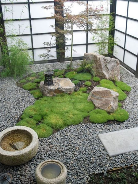 枯山水常被認為是日本僧侶用于冥想的輔助工具,所以幾乎不使用開(kāi)花植物,這些靜止不變的元素被認為具有使人寧靜的效果。