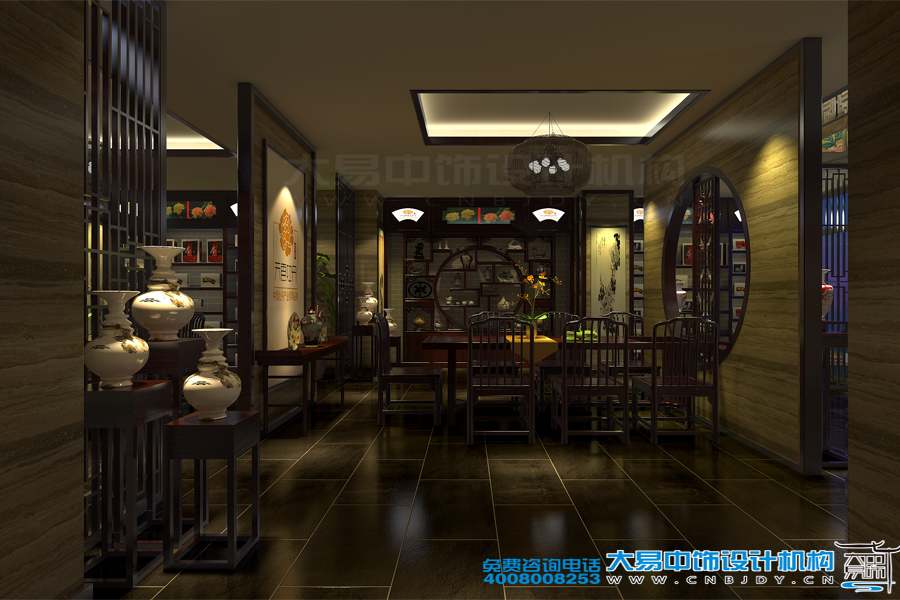 如何裝飾出理想效果中的茶藝空間。大易中飾設計師是這樣為我們解釋的:中式茶館設計不光是體現出禪茶一味的靜謐環(huán)境,更能展示出獨特的民族精神與文化思想內涵。所以,對茶館的裝飾必須把握整體性的前提下,以象征性的符號與典型的審美需求來(lái)凸顯茶館深遠的意境之美。這已不單單是簡(jiǎn)單的裝飾元素堆積,也不是奢華富貴的再現,極具創(chuàng )意的技法與對茶道文化的理解與把握,才能實(shí)現“象者,意之所存,意者,境之所彰顯”意象相托的視覺(jué)升華。