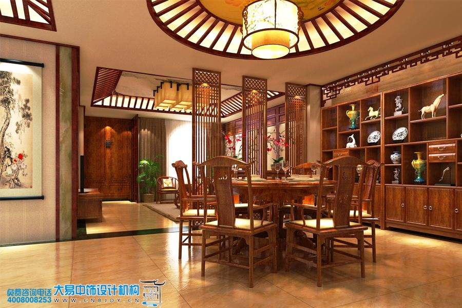 新中式餐廳設計簡(jiǎn)單而不單調。特別是在造型、家具、軟飾配飾上,要達到擺設的協(xié)調與技法運用上的融合,才能塑造出一個(gè)溫馨、別墅的餐飲氛圍。并在平時(shí)就餐的時(shí)刻,也能充分感受到現代家居的舒適、便捷感。