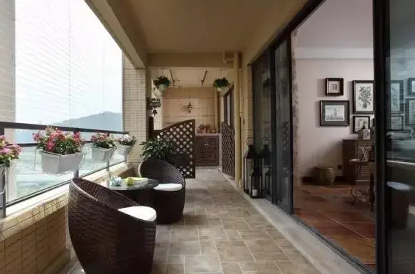 當然了,如果你不喜歡養花草植物的話(huà),還可以將開(kāi)放式陽(yáng)臺打造出一個(gè)小型休閑區。在里面擺放一些桌椅,日常約三兩好友聊天喝茶,暢談人生也不失為一種生活樂(lè )趣。具體開(kāi)放式陽(yáng)臺如何裝修設計,可以根據自身需要來(lái)確定。