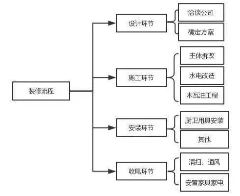 裝修可以大致分為四個(gè)環(huán)節,分別是:設計環(huán)節、施工環(huán)節、安裝環(huán)節、收尾環(huán)節。