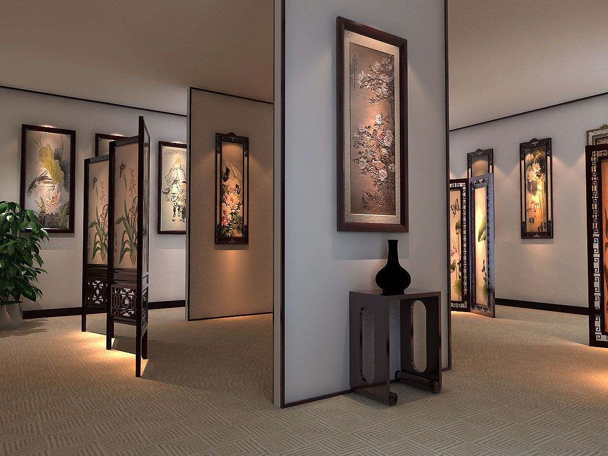 石家莊木版畫(huà)展廳中式裝修效果圖
