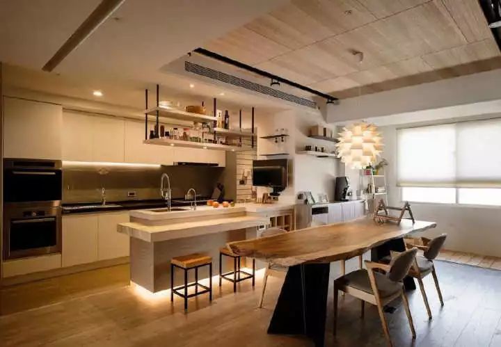一般來(lái)說(shuō),開(kāi)放式廚房裝修設計將有一個(gè)吧臺,吧臺與吧椅的高度應協(xié)調。